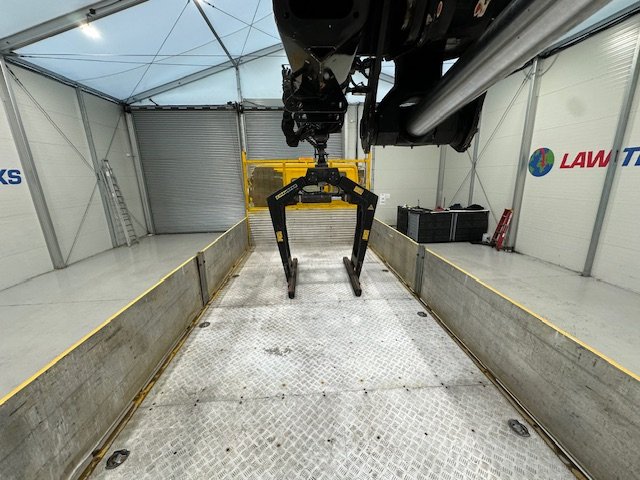 - Atlas 129.3 Crane with Kinshoffer Brick Grab Attachment.