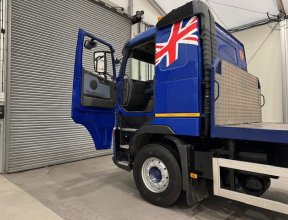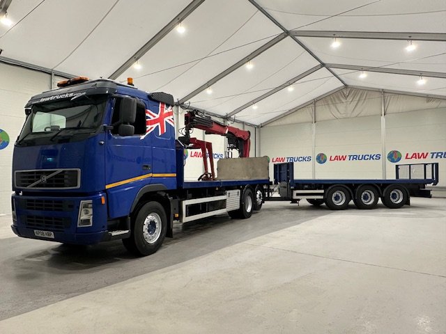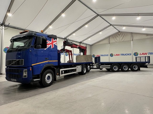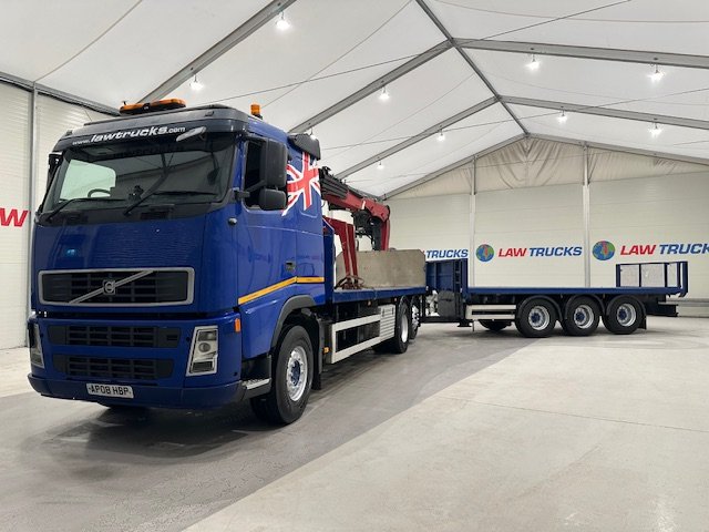 - 2008 FH 440 6x2 Rear Lift Sleeper Cab Brick Grab Flatbed with 2014 Montracon Tri Axle Brick Grab Trailer.
