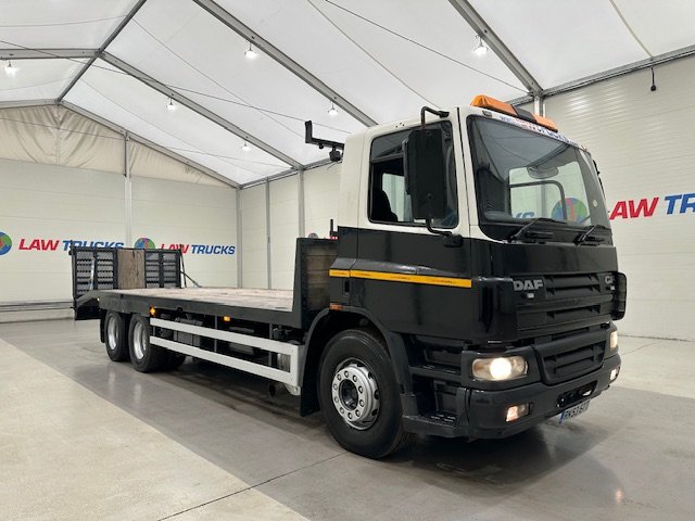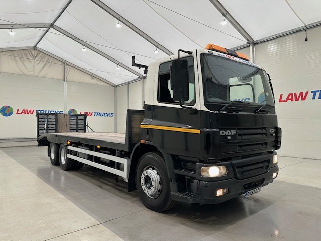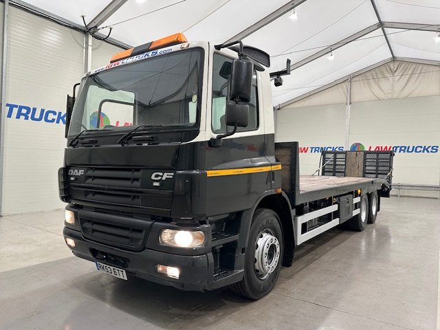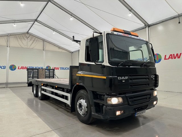 - 2003 DAF CF75 310 6x2 10 Tyre Rear Lift Day Cab Beavertail Flatbed.