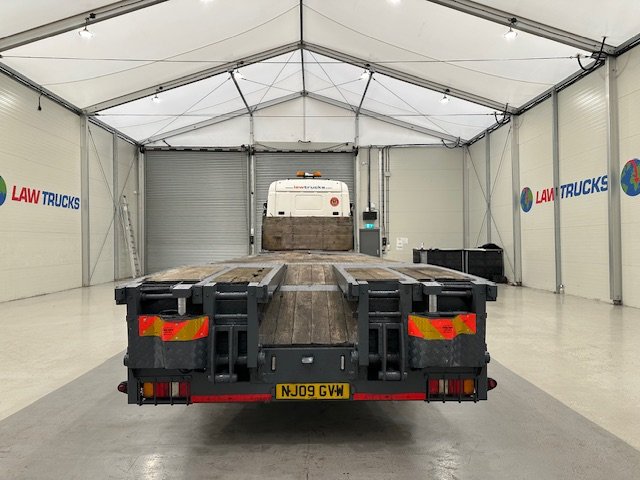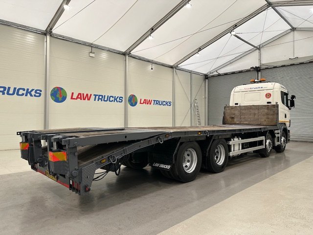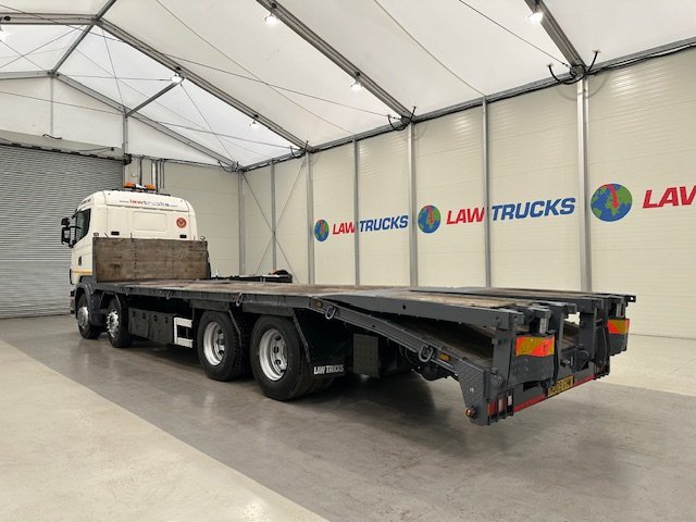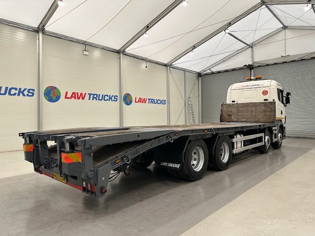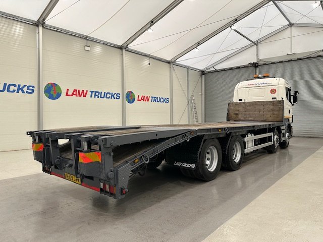 - 2009 Scania R420 8x2 12 Tyre Rear Lift Sleeper Cab Flatbed Beavertail.