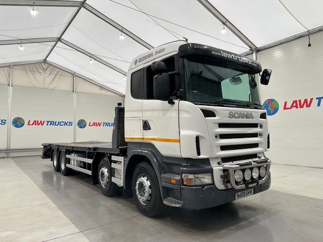 Scania R420 8x2 12 Tyre Rear Lift Sleeper Cab Flatbed