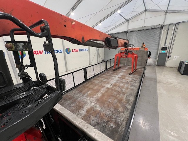 - Palfinger PK180001L Crane with Brick Grab Attachment.