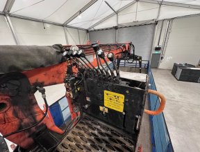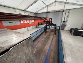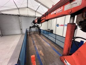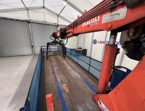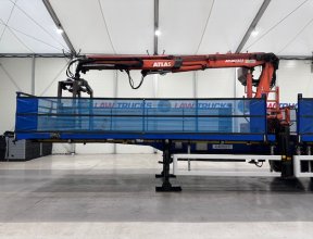 - 2015 SDC Tri Axle Flatbed Trailer, Atlas Terex 125.1 Top Seat Brick Grab Crane.