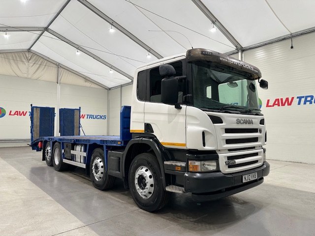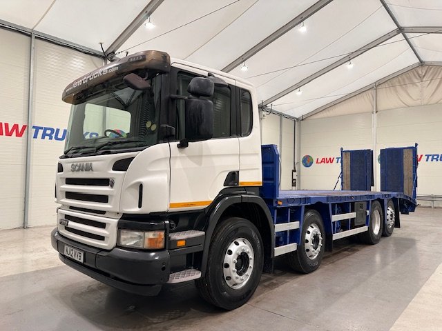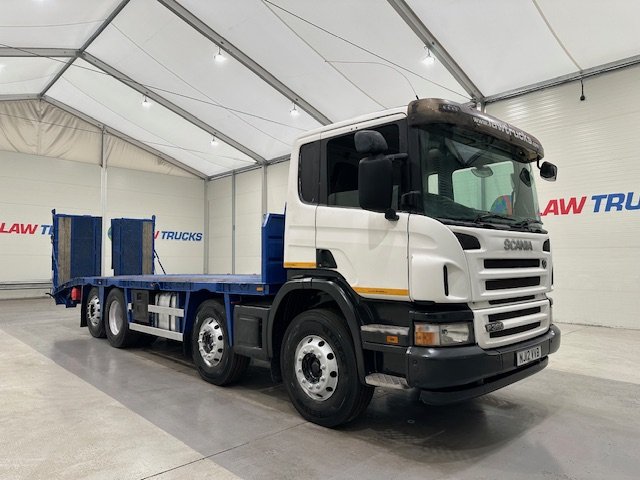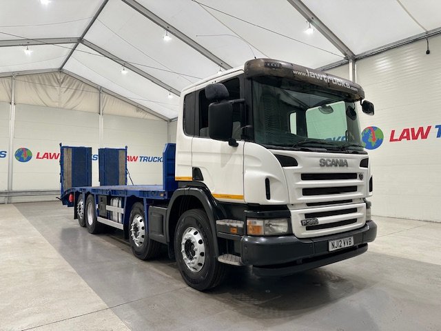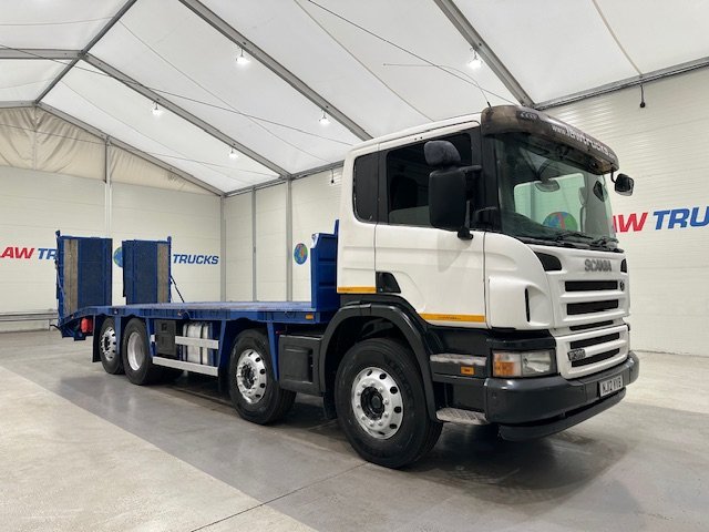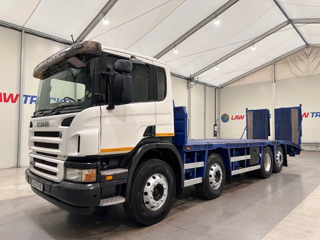 - 2012 Scania P360 8x2 12 Tyre Rear Lift Day Cab Flatbed Beavertail.