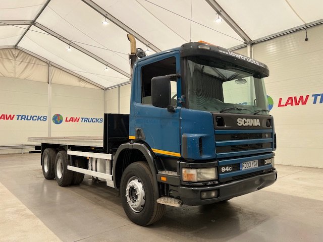 - 2003 Scania P94 300 6x4 Day Cab Flatbed on Springs Suspension.