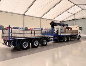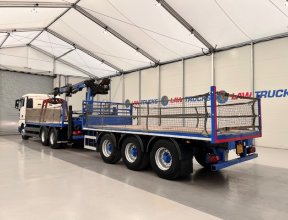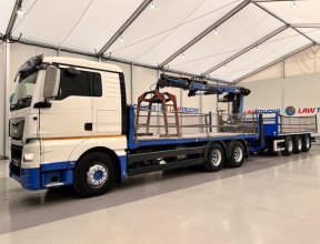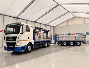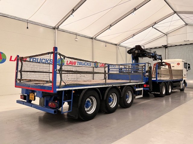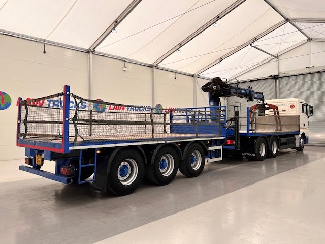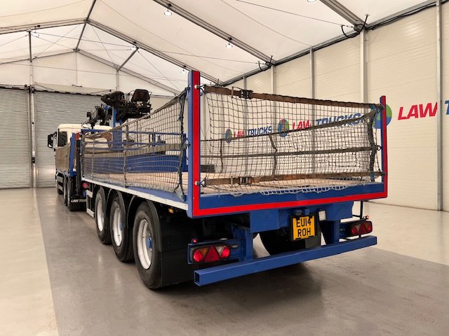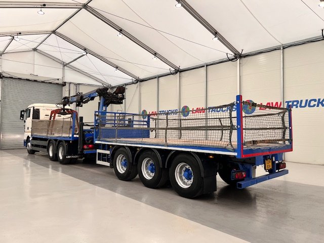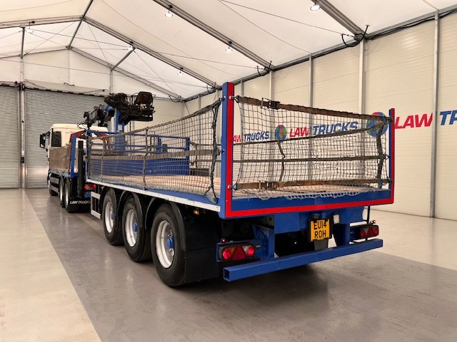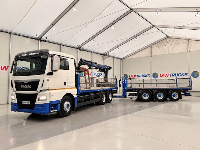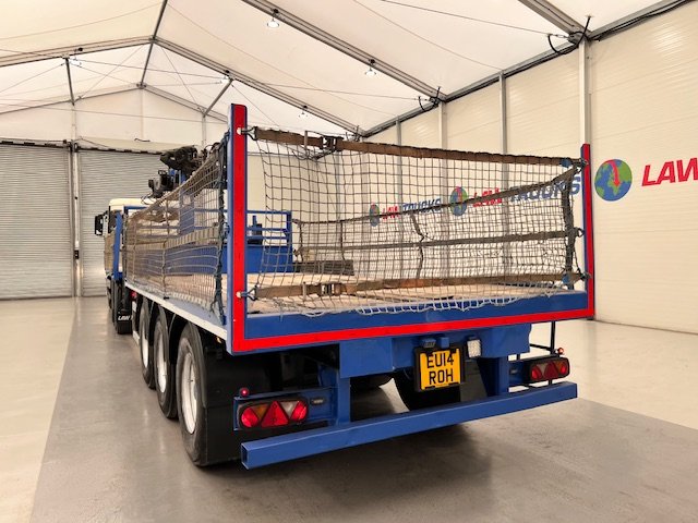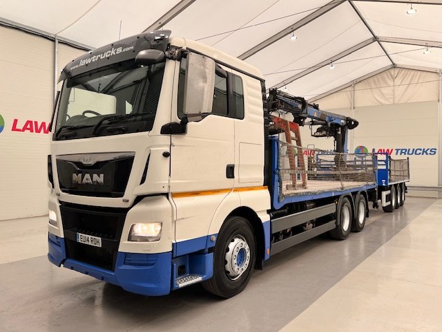 - 2014 Man Tgx 26.440 6x4 Double Diff Sleeper Cab Flatbed Brick Grab with 2013 SDC Tri Axle Drawbar Trailer